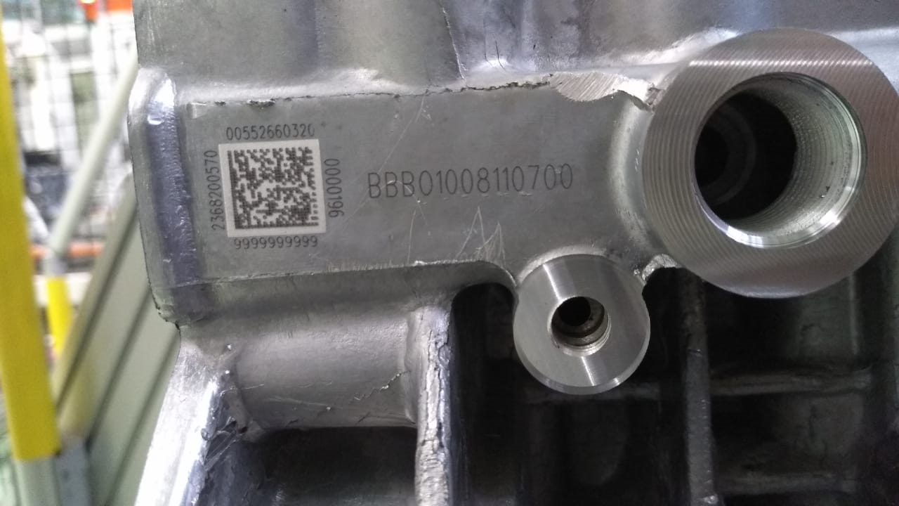 某著名的跨国汽车集团在发动机部件上打标二维码